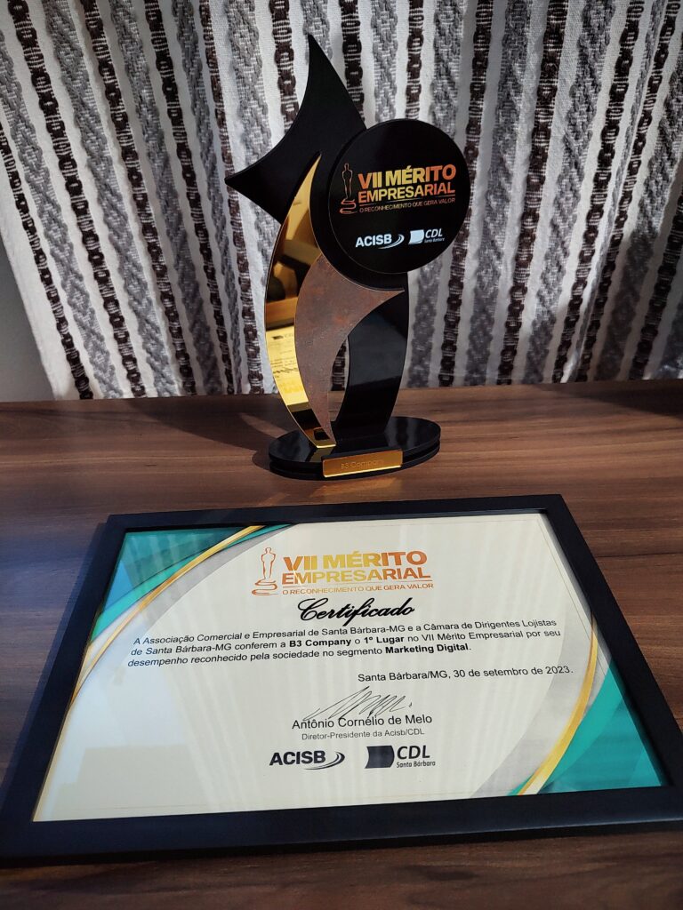 Em 2023 concorremos com várias empresas e ganhamos o prêmio de melhor agencia de marketing digital da cidade de Santa Barbará-MG, reconhecido oficialmente pela CDL.